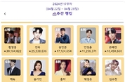 트로트 가수 황영웅이 트로트 가수 인기차트 서비스 앱 ‘트롯스타’에서 7월 1주차 1위를 차지하며 가장 많은 별을 받았다. 2024년 7월 1주차 주간랭킹에서는 황영웅이 39,425,481표를 얻으며 1위를 차지했다. 2위는 16,561,086표를 얻은 최수호, 3위는 9,812,940표를 획득한 안성훈, 4위는 8,767,400표의 송가인, 5위는 8,596,616표의 무룡으로 각각 집계됐다. ‘트롯스타’ 서비스는 팬들이 직접 자신이 응원하는 트로트 가수에게 투표해 순위를 결정하는 랭킹 투표로, 실시간 투표를 집계하여 한국 시간으로 매일 밤 10시에 초기화된다. 투표 순위와 상관없이 일정 득표 이상만 달성하면 스타에게 지하철 광고 특전이 주어진다. 트롯스타 7월 1주차 주간 랭킹 1~20위는 △ 황영웅 △ 최수호 △ 안성훈 △ 송가인 △ 무룡 △ 손태진 △ 진욱 △ 송민준 △ 에녹 △ 박성온 △ 양지은 △ 박서진 △ 전종혁 △ 박지현 △ 홍자 △ 나상도 △ 송도현 △ 신성 △ 김수찬 △ 진해성 순으로 집계됐다. 한편, 트롯스타는 매달 3위 및 3천만표 이상을 달성한 가수에게 지하철 광고, 뉴스 기사 배포를 통한 브랜드 순위 상승 등의 선물을 제공하고 있으며