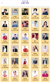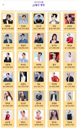 황영웅, ‘트롯스타’ 2025년 1월 월간 1위…안성훈·진욱·송민준·손태진·박성온 뒤이…